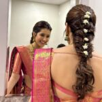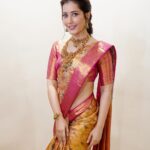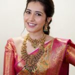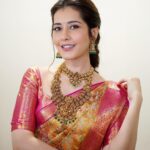Recently, Popular actress Raashi Khanna inaugurated Mangalya Shopping mall in Suryapet. Raashi wore a orange and pink combination pure kanjeevaram saree for the event. She looks so stunning in that traditional look. Check out her photos below.